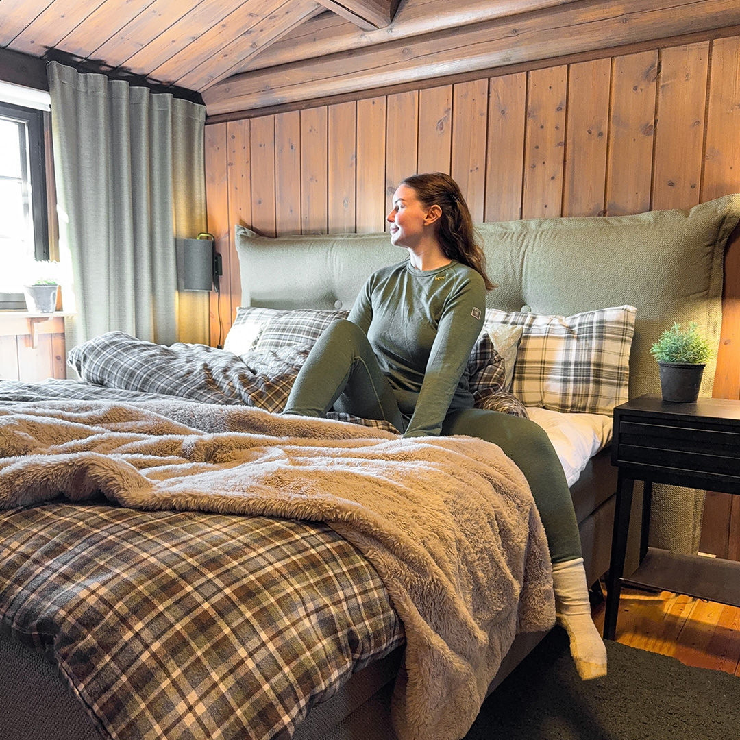 Et godt inneklima bidrar til bedre søvn. Luft ut før leggetid, og la stillheten være en del av opplevelsen – det er noe av det beste med hyttelivet.
