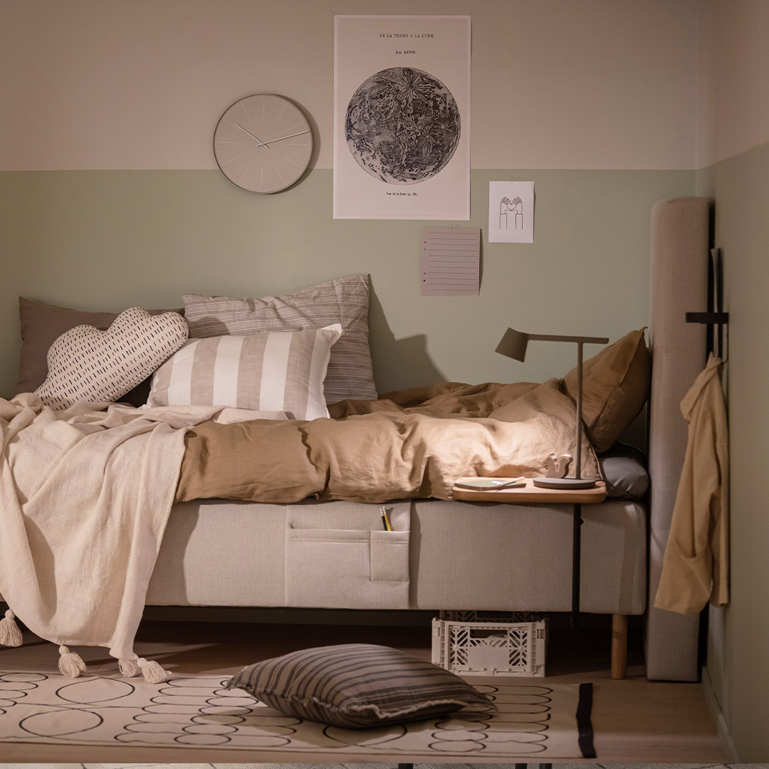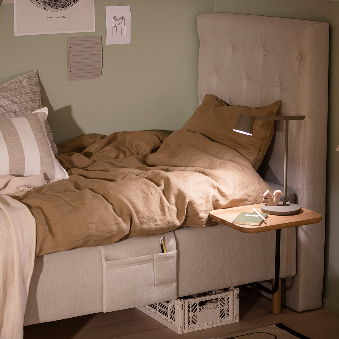 Rätt storlek – nu och senare: Välj 90×200 (eller längre) istället för en kort juniorsäng, så slipper du byta efter ett par år.