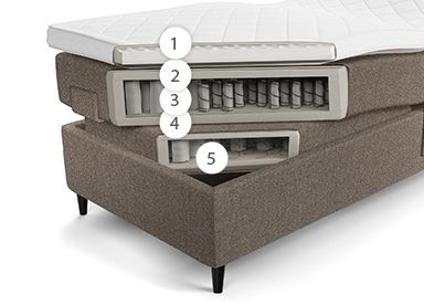 Die Technik im Inneren dieses eleganten Bettes wird durch den textilbespannten Rahmen verdeckt, so dass es im Ruhezustand wie ein klassisches Continental-Bett aussieht. Das Jensen Aqtive II ist doppelt gefedert mit Federsystemen in der Wendematratze sowie im Lattenrost. Das zusätzliche Federsystem verleiht dem Bett im Vergleich zum Jensen Dream noch mehr Stabilität und Komfort.