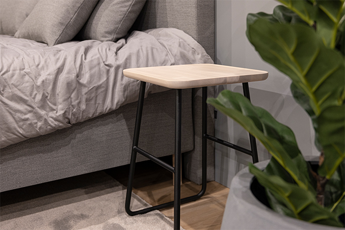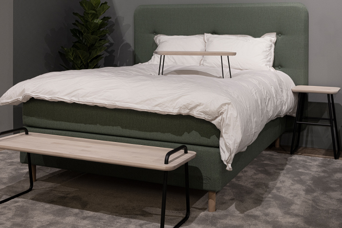 Die Birkenholz-Kollektion wird im norwegischen Sykkylven hergestellt und besteht aus zwei verschiedenen Nachttischen, von denen einer auf dem Boden steht und einer an allen Jensen-Betten befestigt werden kann, sowie aus einem Frühstückstablett, einer Design-Bank und Bettfüßen. Die schönen Designprodukte sind aus UV-lackiertem, hellem Birkenholz mit einem Sockel aus pulverbeschichtetem Stahl gefertigt.