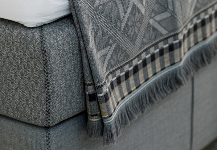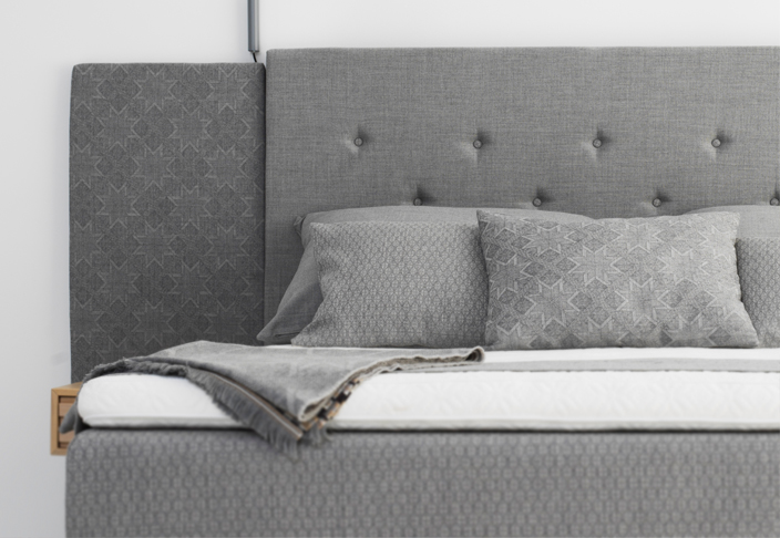 I tillegg er sengen tilgjengelig i fire ulike fasthets-grader. Et vakkert design bidrar til en god start på natten, og i Icons tekstil er den klassiske stjernerosen utgangspunkt for mønsteret. Det kan både ses som en hyllest til de rike tekstil- og hånd-verkstradisjonene her til lands, og som et ønske om å utvikle norsk design videre. Tekstilkolleksjonen består av seks ulike stoff-kombinasjoner, som finnes i dempede og tidløse farger. Hver kombinasjon byr på tre ulike tekstiler, ett tekstil med et lite rosemotiv, ett med stor rose og et glatt tekstil. Bruken av foldesøm og doble hjørne-sømmer bidrar også til å understreke det håndverksmessige kvalitetsarbeidet som ligger bak Icon.