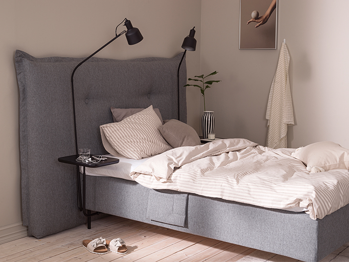 Enkeltsengene kan kombineres med en ekstra stor gavel og øvrig tilbehør i Jensens sortiment.