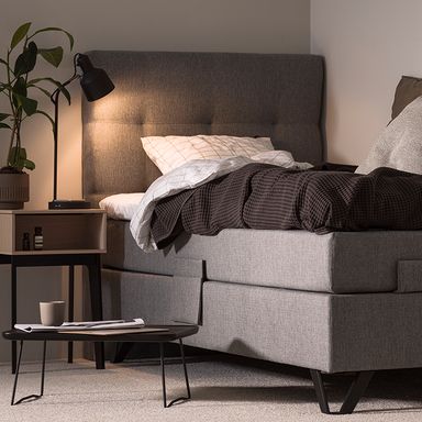 Størrelsen på soverommet kan være en begrensende faktor, men hvis man har plass til det, bør man prioritere 90x200 cm om man sover alene, 180x200 cm om man deler sengen med en partner. Om du har barn eller dyr som liker å komme opp i sengen om natten, anbefaler vi at du tar hensyn til dette når du bestemmer sengens størrelse. Hva med høyden din?