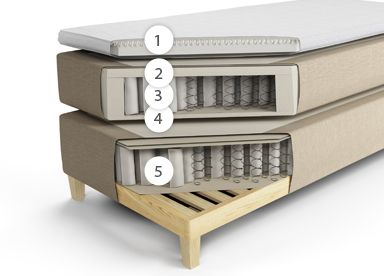 Um sistema de molas sensíveis em que cada mola está envolvida por um saco em tecido (pocket). A consequência imediata deste sistema é que cada mola funciona de forma independente, melhorando a redução da pressão e promovendo uma distribuição mais uniforme da mesma. Uma chapa de aço montada na zona superior e inferior da mola garante a estabilidade de cada elemento. O sistema de cinco zonas, com uma zona para ombros macia e uma zona de apoio lombar incorporada, melhora o conforto porque reduz a pressão e distribui-a de forma mais uniforme, independentemente do volume ou da posição do corpo.
