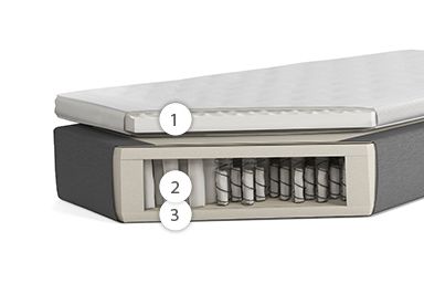 The spring system softens the entire mattress surface, since the firmer zones only come into function when your body sinks into the mattress.