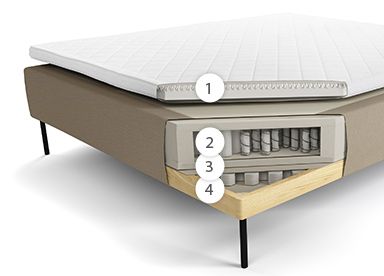 The Aloy® 2.1 Spring System (12,5 cm) of the Jensen Countess supports and adapts to your body. The extra soft and long shoulder zone provides great flexibility and space for your shoulders. The spring system also features built-in support for the lower back.